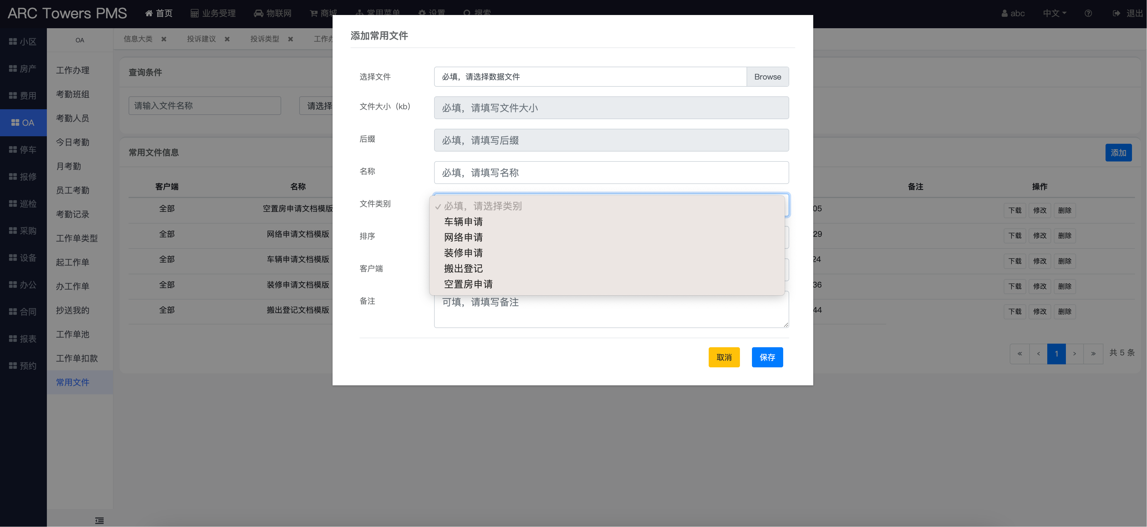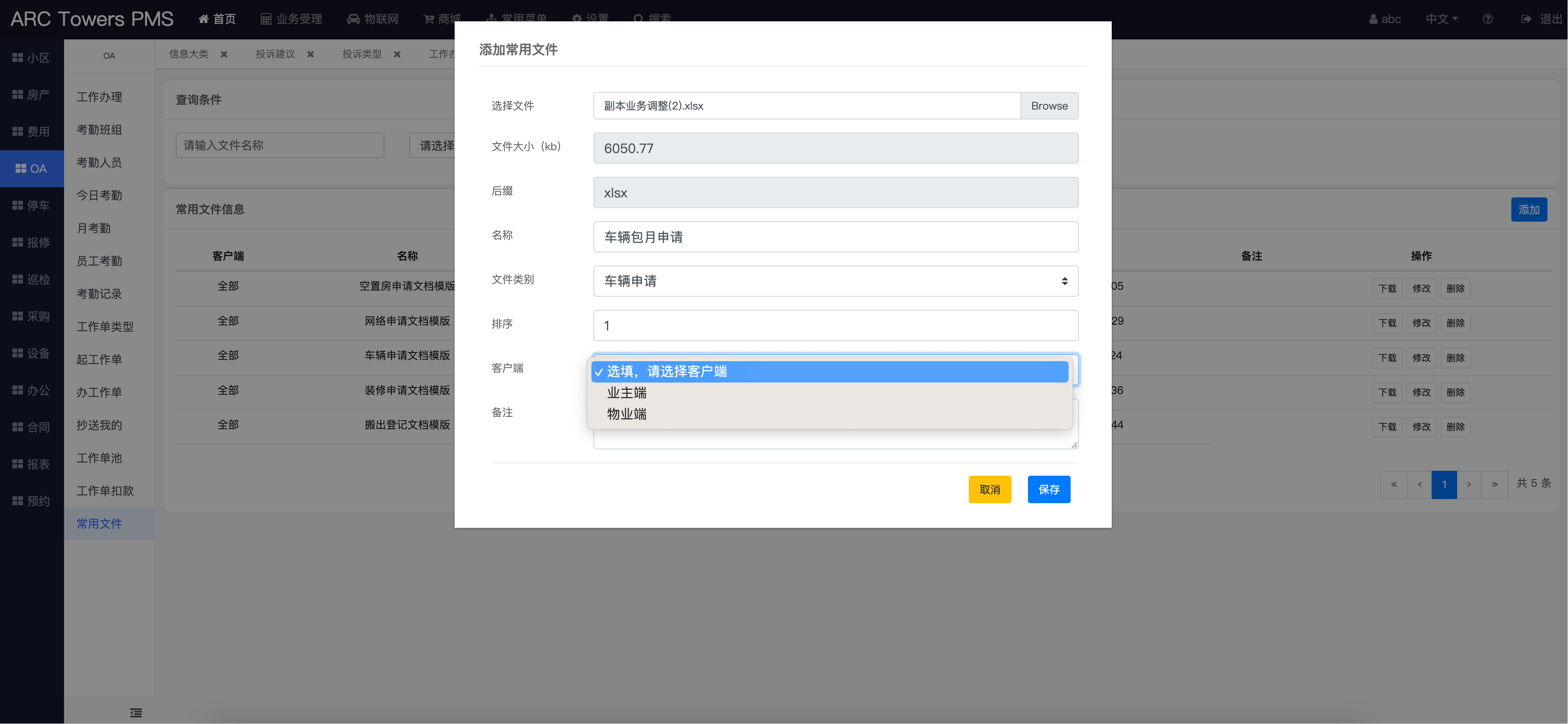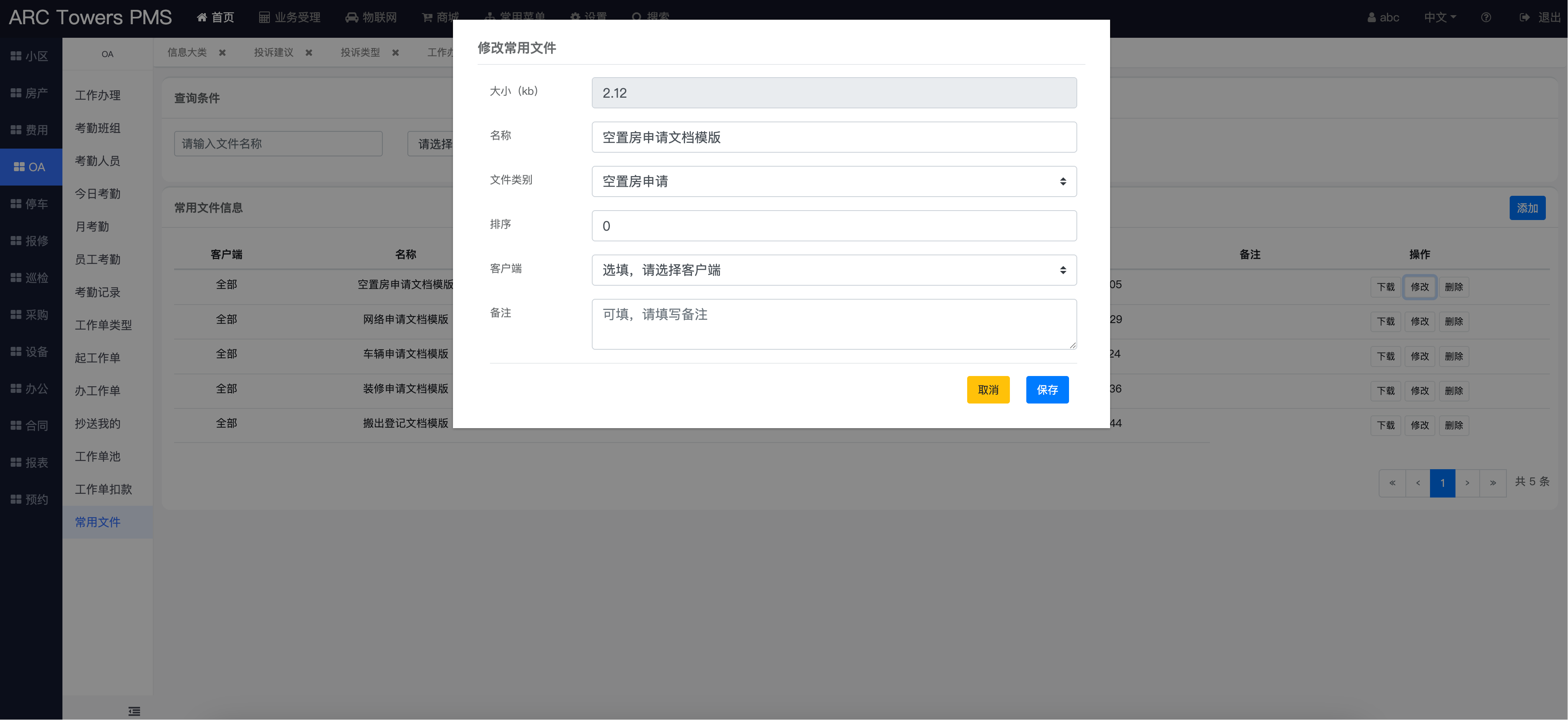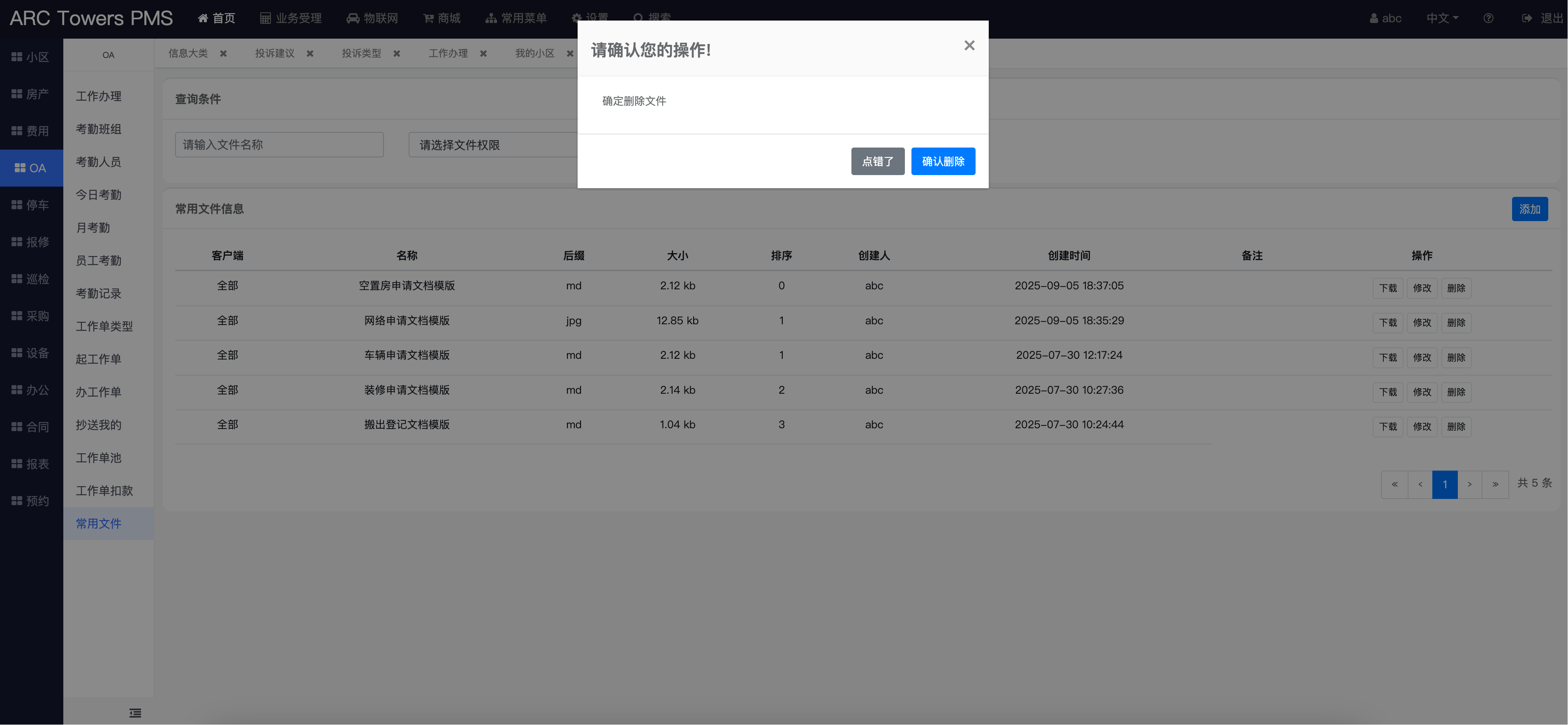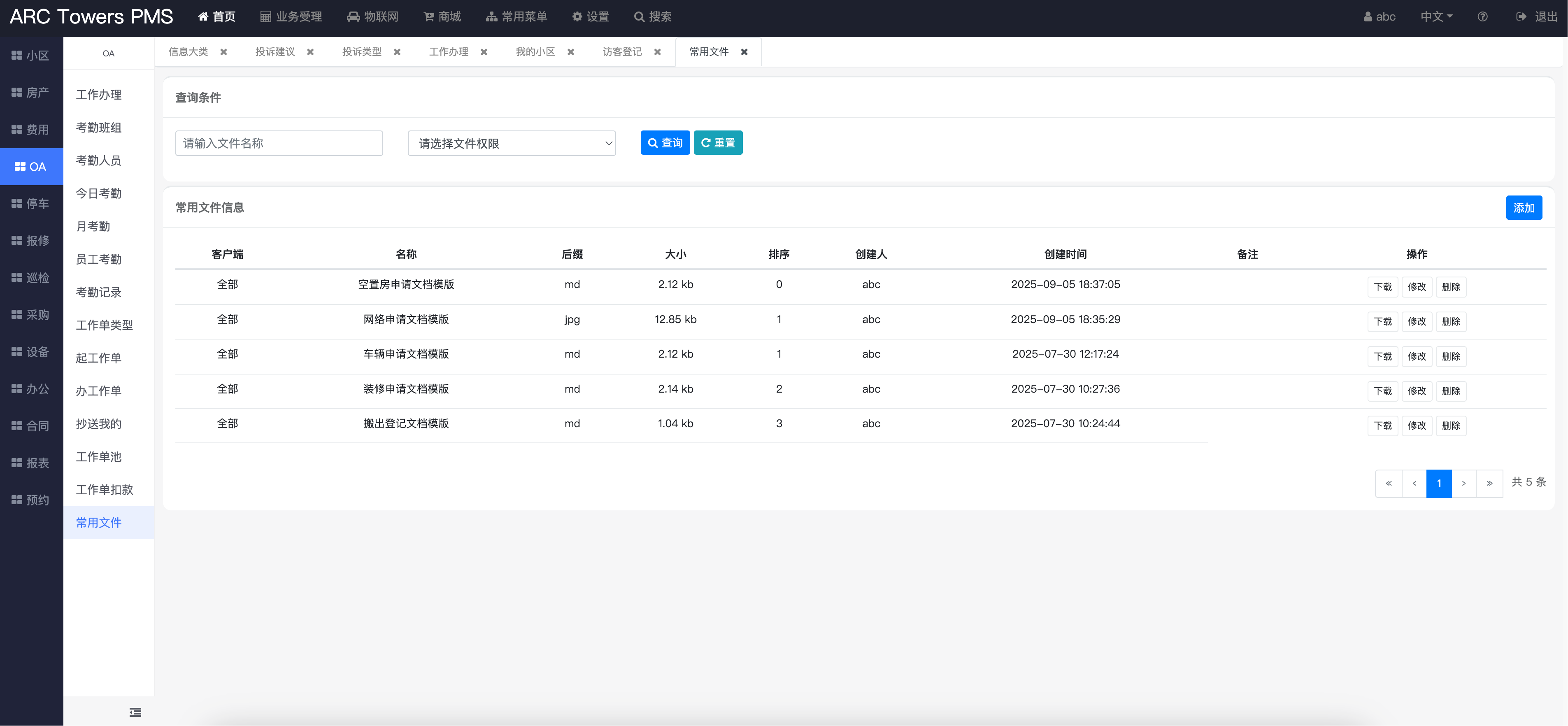 作为一个 物业管理人员 我想要 在线管理常用文档模版 以便于 根据需求快速办理业主业务