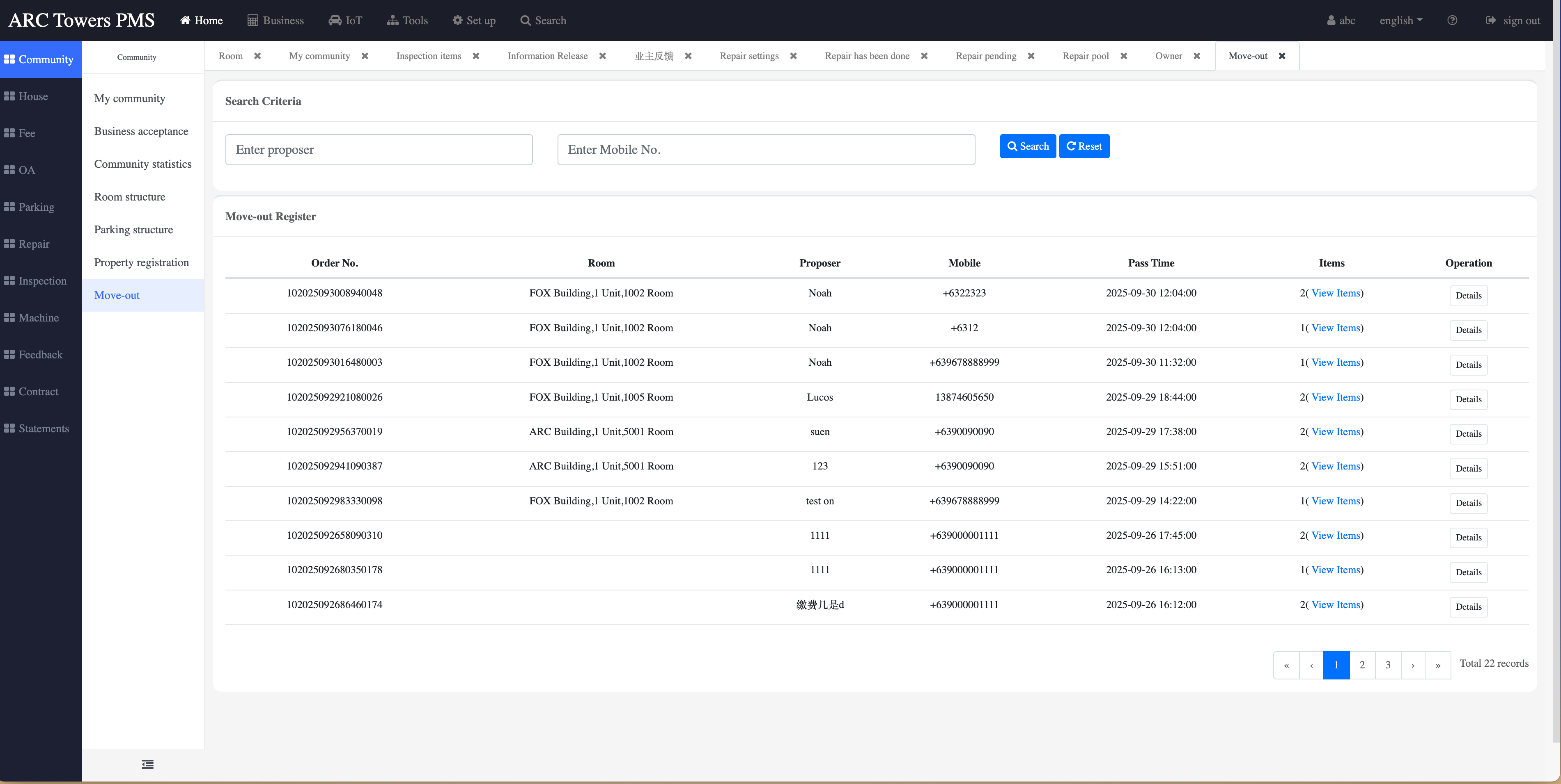 作为一个 物业管理人员 我想要 查看业主搬出登记 以便于 留存记录